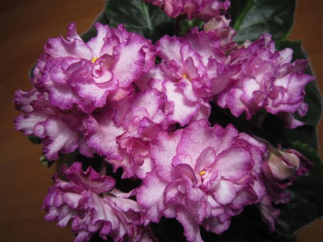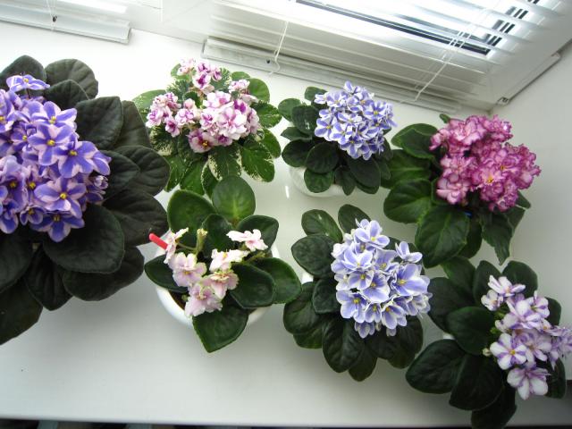 Фиалочной болезнью страдаю давно с 1995 года. Все начиналось с обычных фиалок, которые были без названия сортов. На тот момент меня это и не интересовало. Росли они у меня в плошках-"ведрах" и ничего цвели, радовали. Когда купили компьютер, первым делом в интернете начала просматривать информацию о сенполиях. И тут моя "фиалочная болезнь" обострилась. Столько сортов, глаза завидущие, руки загребущие. Вот и понеслось. Заказывала у кого могла (О. Щербининой, А. Шакуровой, О.Дудиной...) Стала более разборчивой, появились свои критерии оценки сортов. Что-то отдавала своим знакомым, часть отнесла на работу, коллекция поскуднела. Покажу немного фото фиалок, которые радуют меня сейчас.