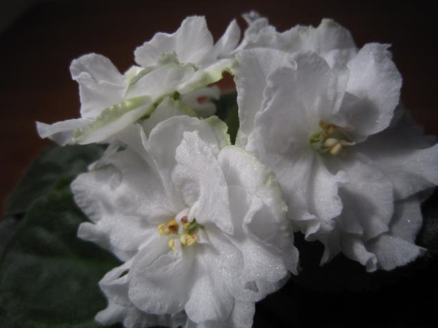 Monique у меня впервые так зацвела, но зелень со временем пропала. Да листики этого сорта не очень темные, вот Fenna с темными листьями, причем с изнанки есть краснинка. Наталья, Вы покупали цветущую фиалку?